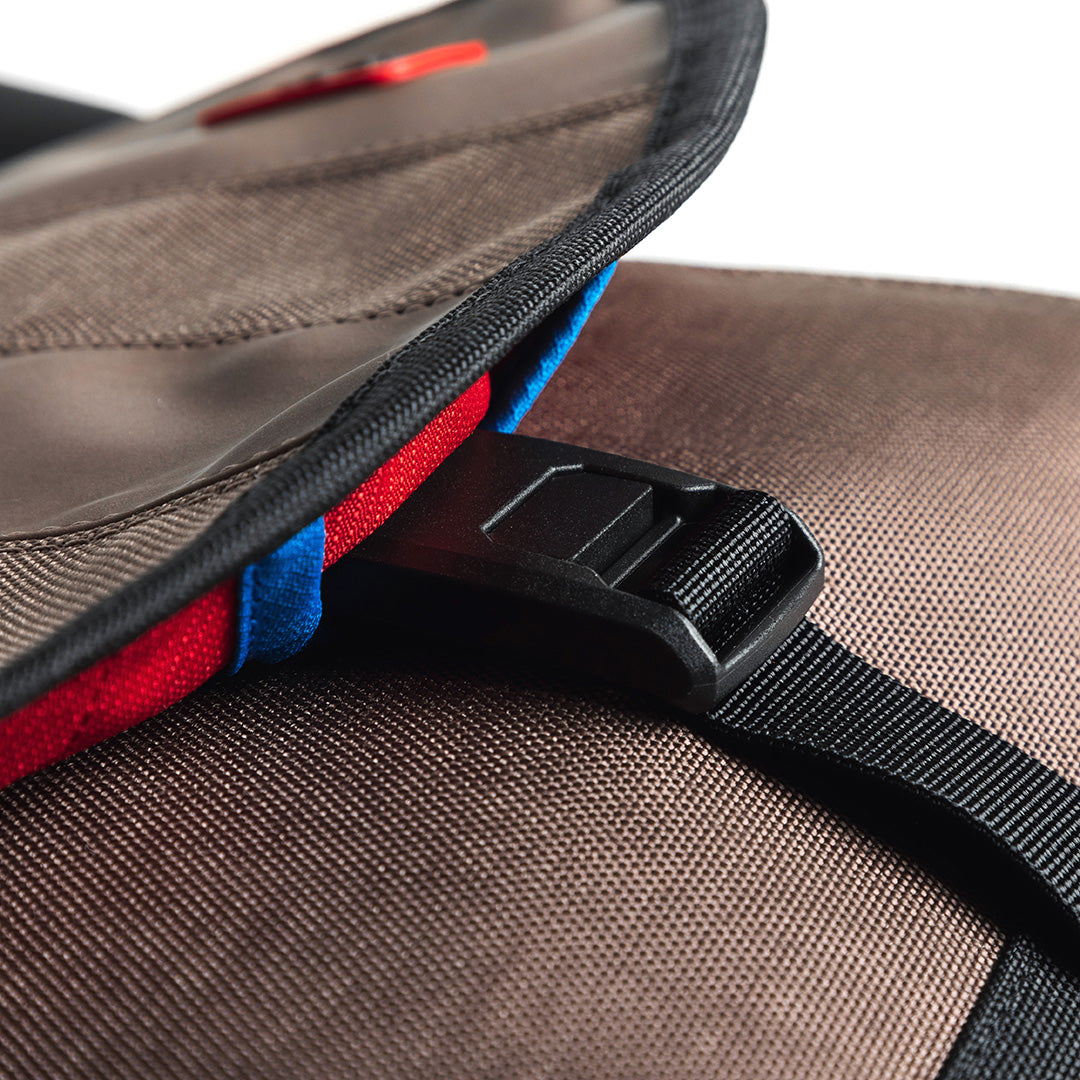 Our "Third Leg Stabiliser" is a removable strap system that is fitted to most of our Crumpler messenger bags. It can be attached on both sides and ensures that the bag sits firmly on your back when cornering quickly, on bumpy roads and during awkward encounters.