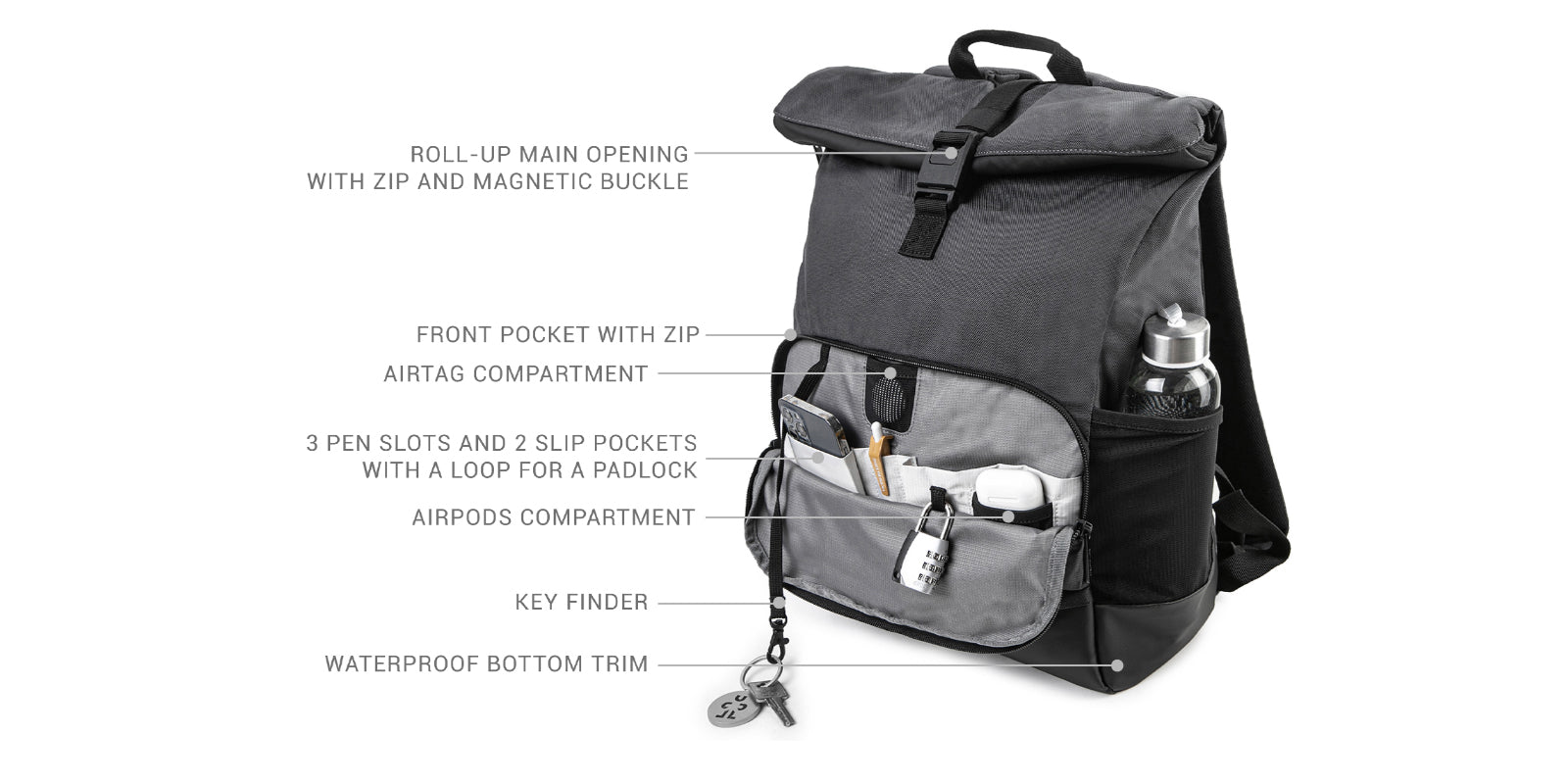 - Laptop compartment: 22.2 x 31.3 x 1.6 cm