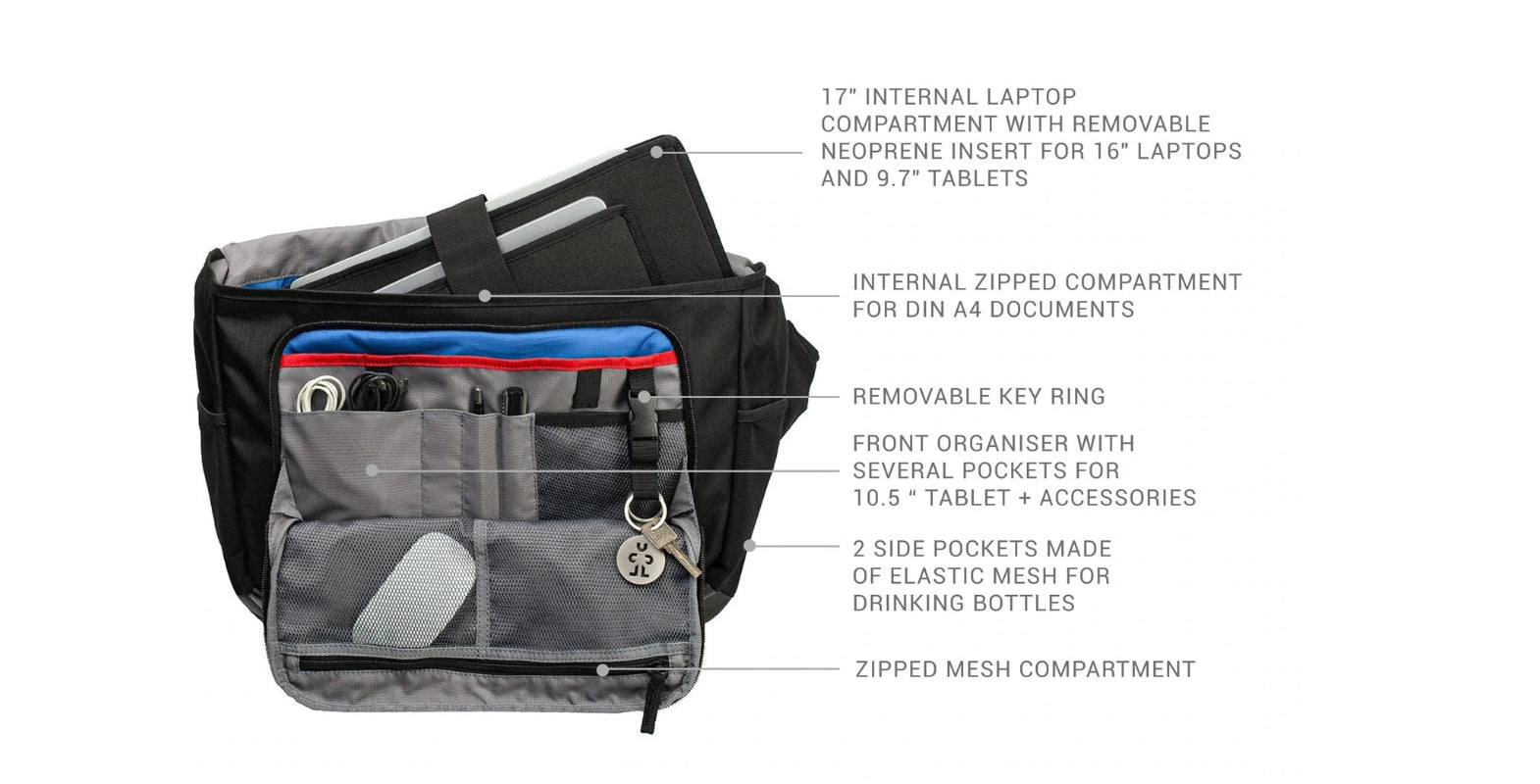 - Laptop compartment: 43.0 x 29.0 x 4.3 cm