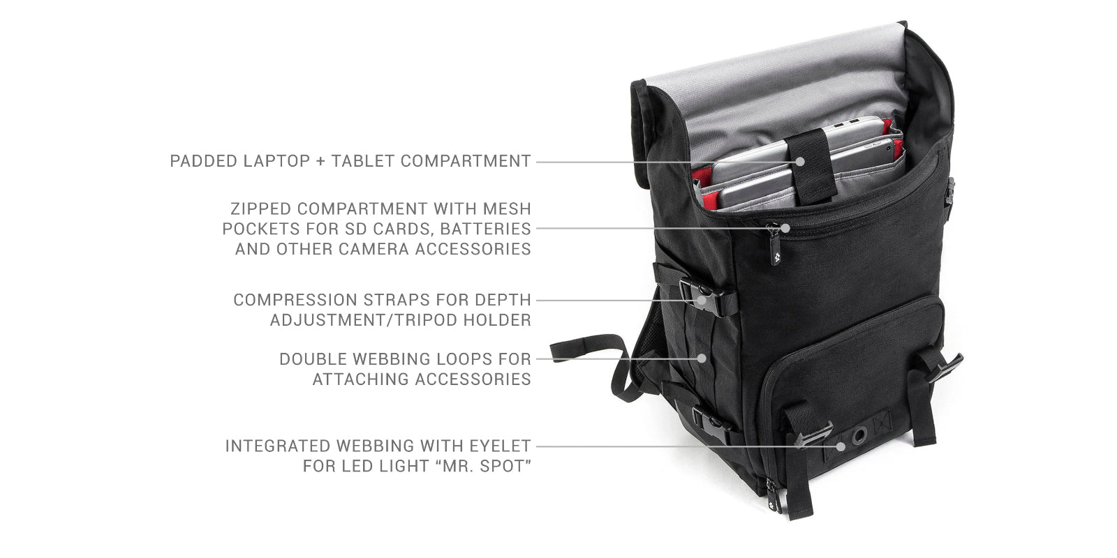 - Camera compartment: 34.0 x 21.0 x 13.0 cm