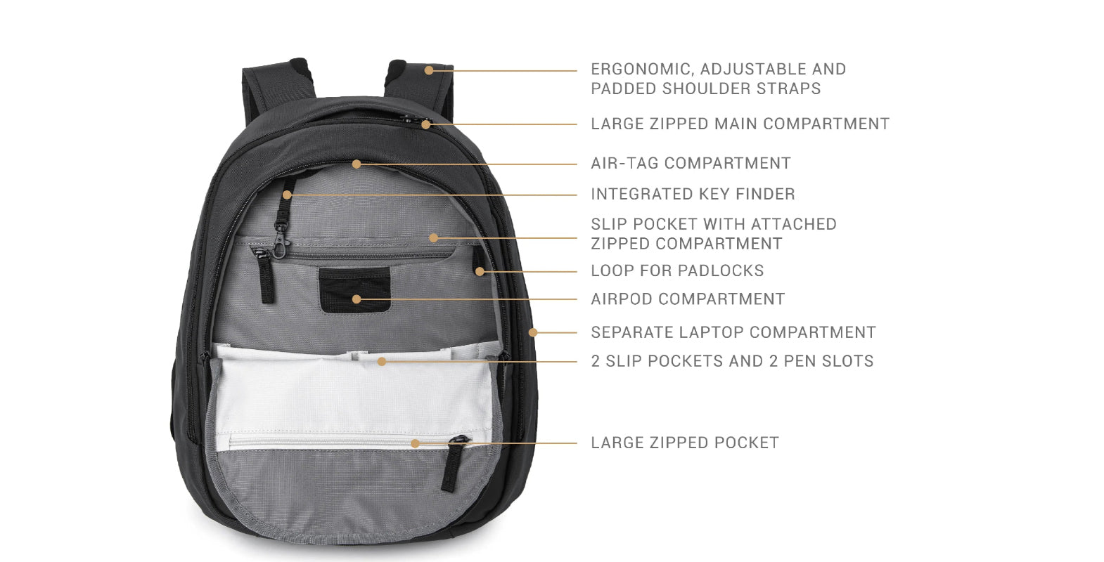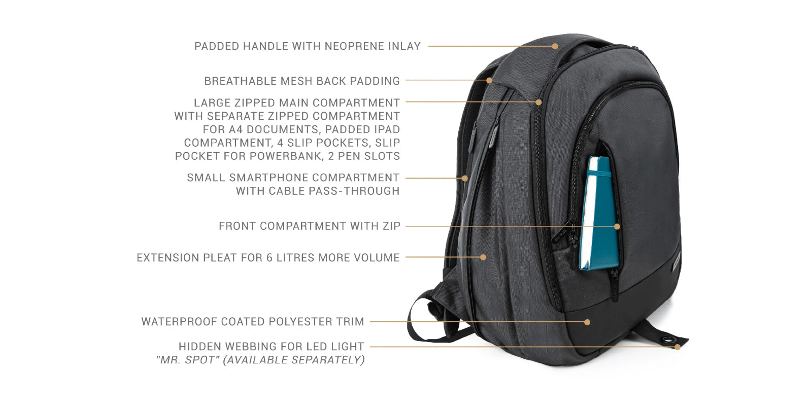 - Laptop compartment: 37.0 x 26.0 x 2.5 cm