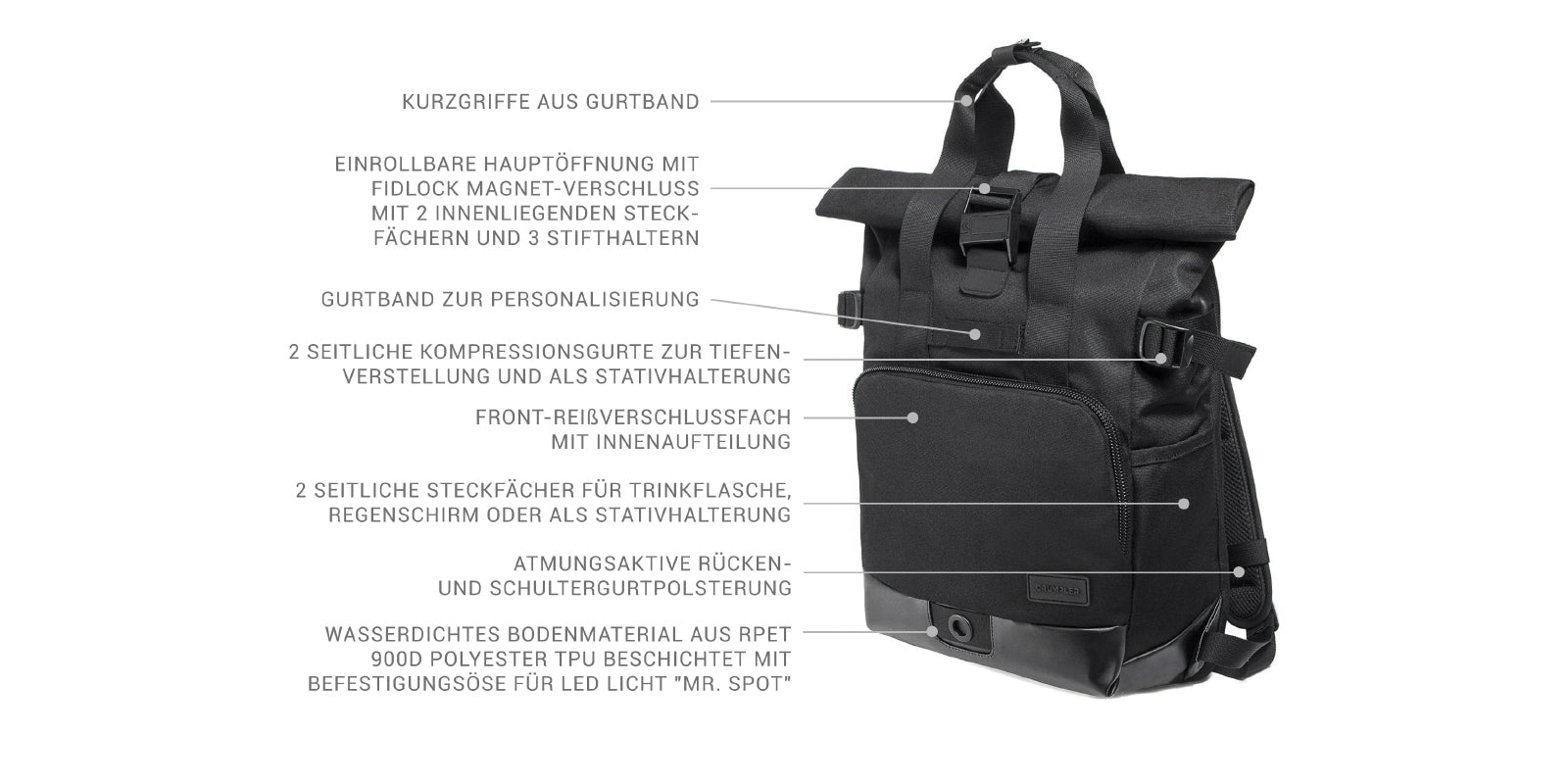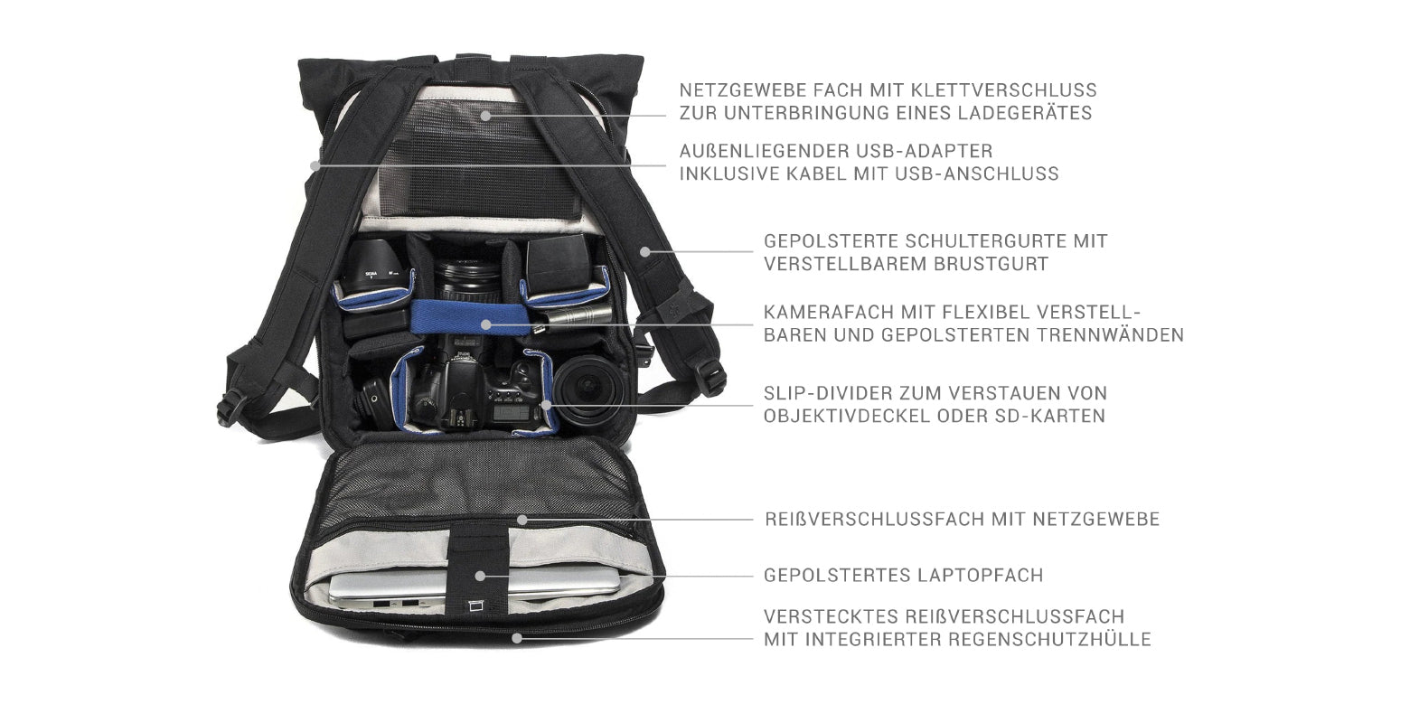 - Kamerafach: 29,0 x 22,0 x 14,0 cm