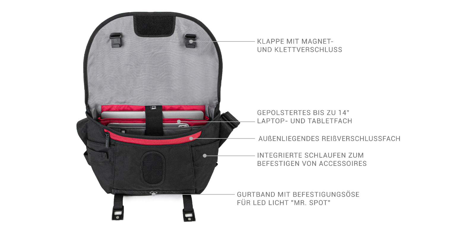 - Laptopfach: 31,3 x 22,2 x 1,6 cm