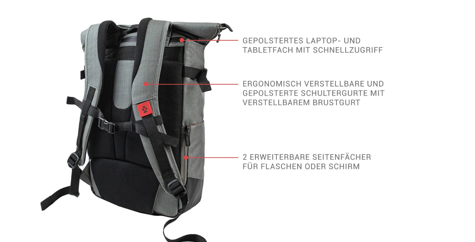 - Laptopfach: 24,9 x 35,6 x 1,7 cm